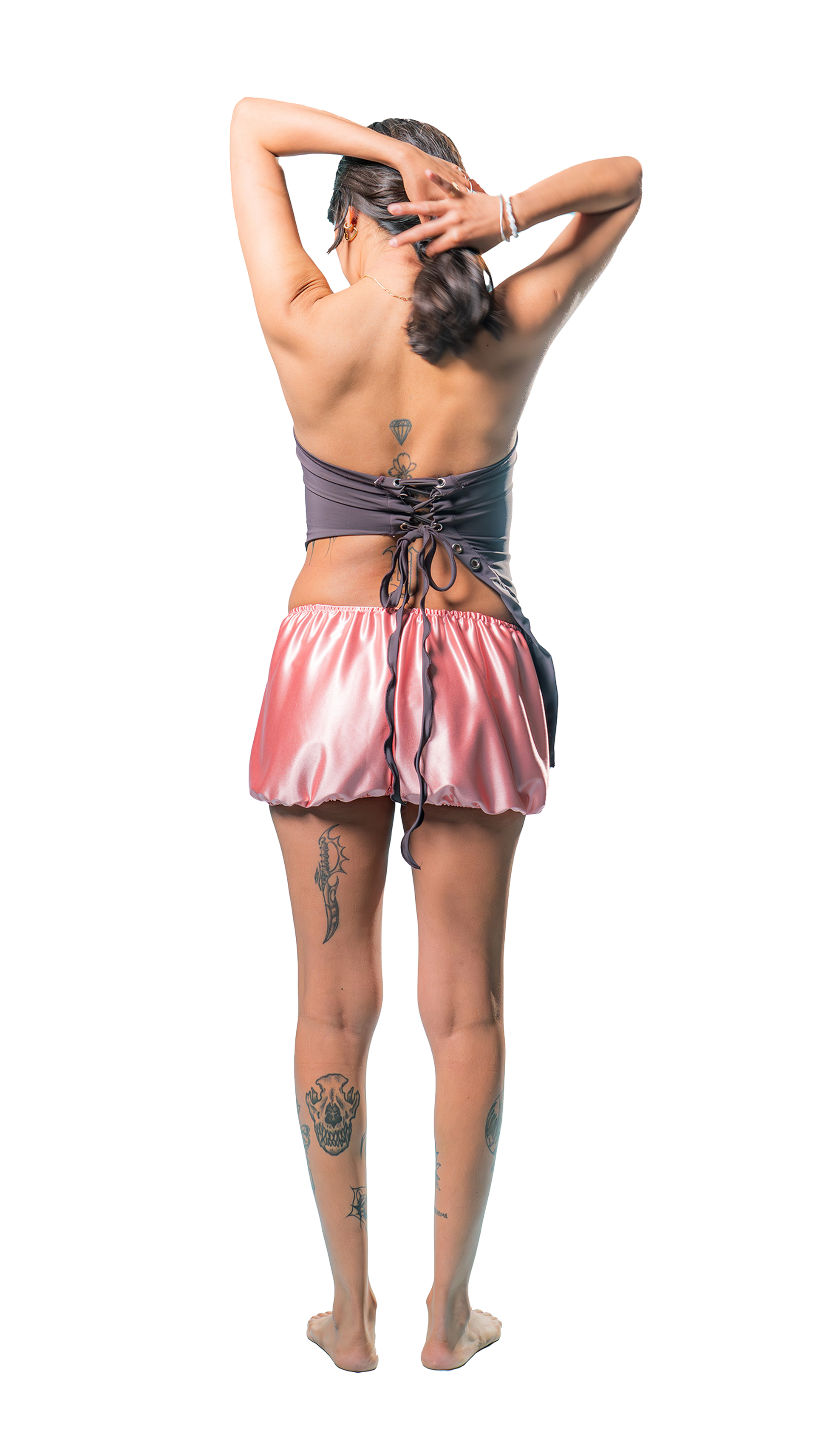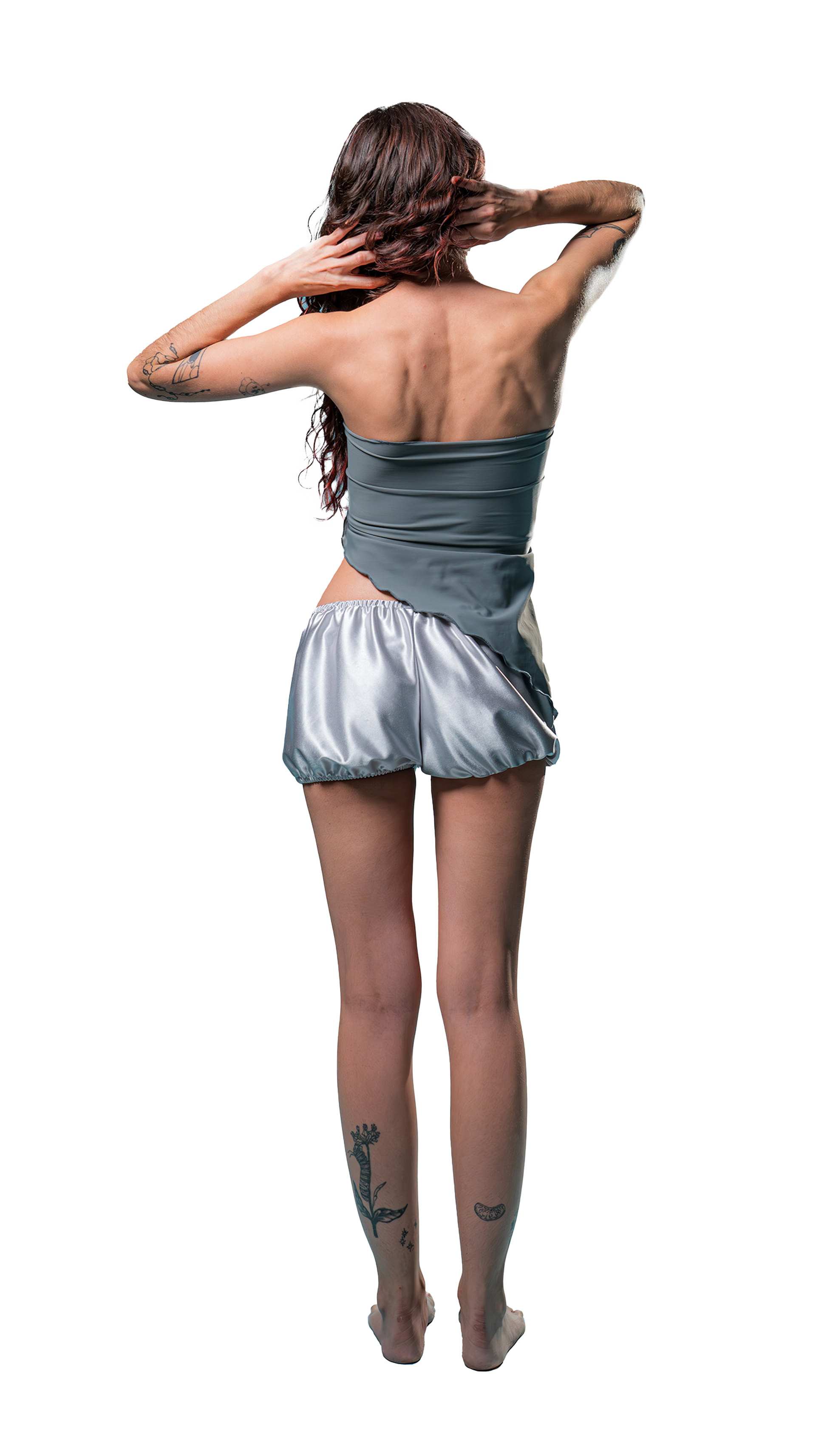 Shiny poly-spandex fabric, with 2-way stretch. (95% Polyester - 5% Spandex)