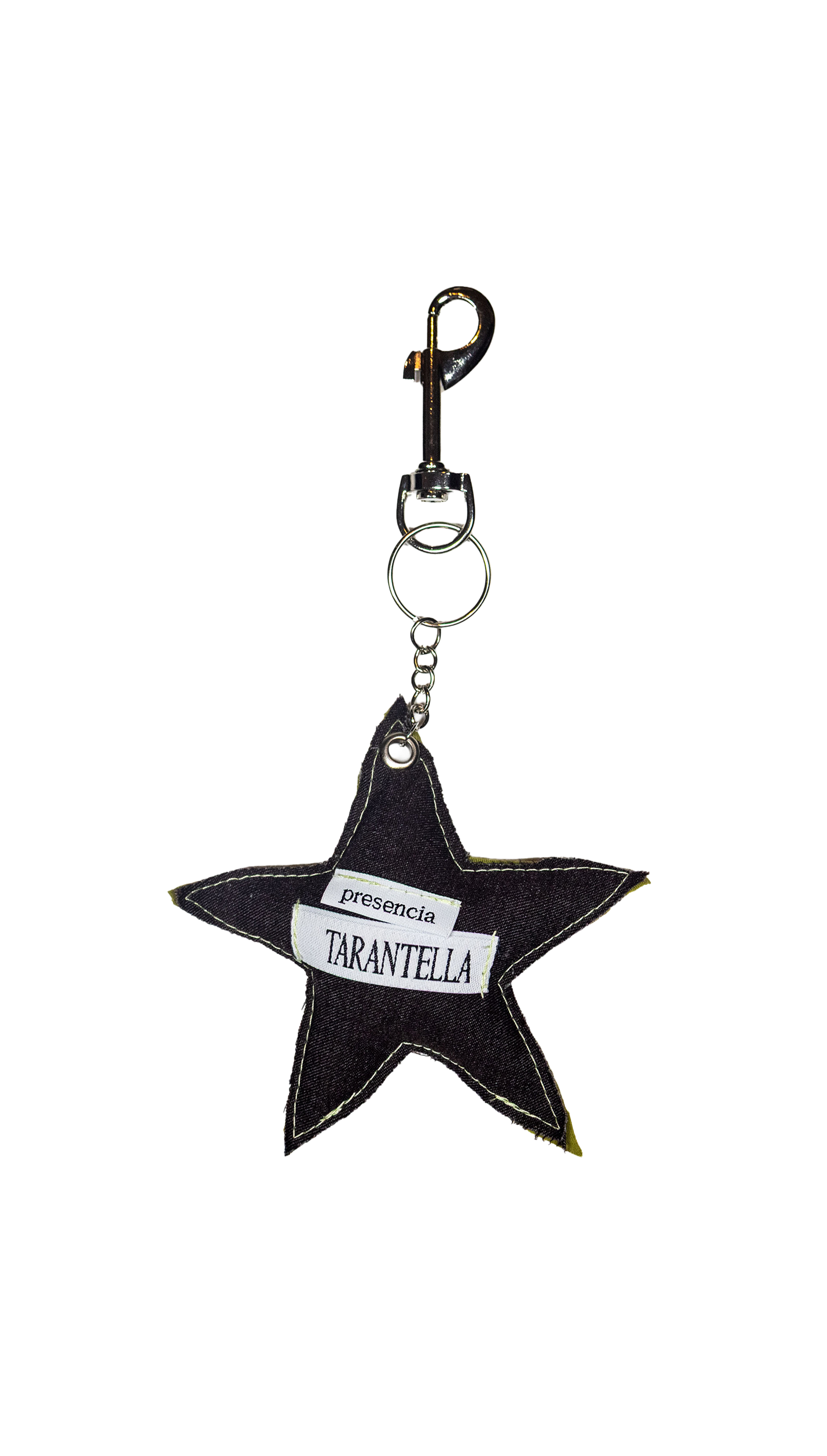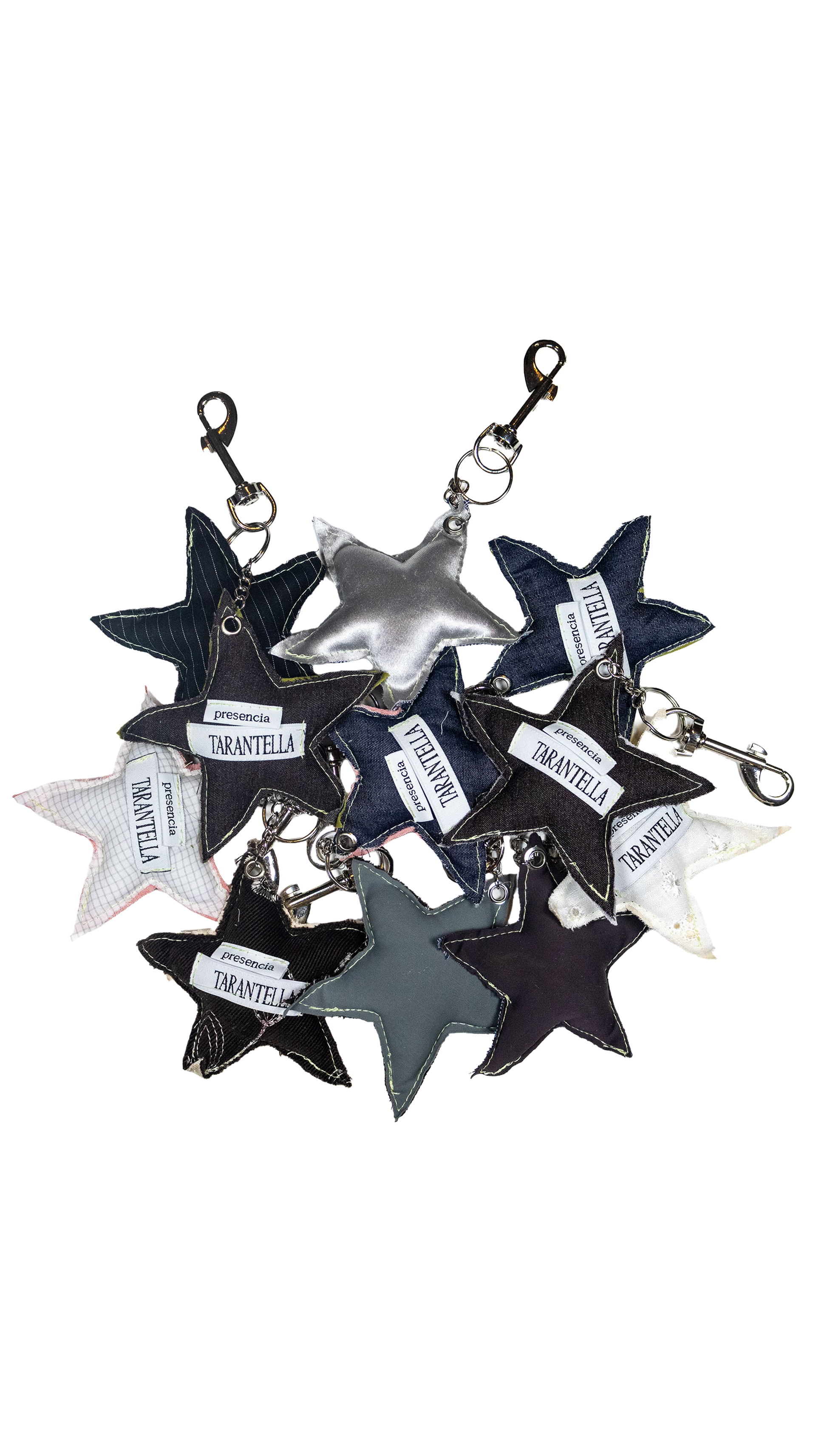 Llavero en forma de estrella confeccionado con retazos de telas y un clip metálico para que puedas colgar donde quieras (el color de los llaveros puede variar ya que cada uno está confeccionado con retazos de presencia y tarantella).