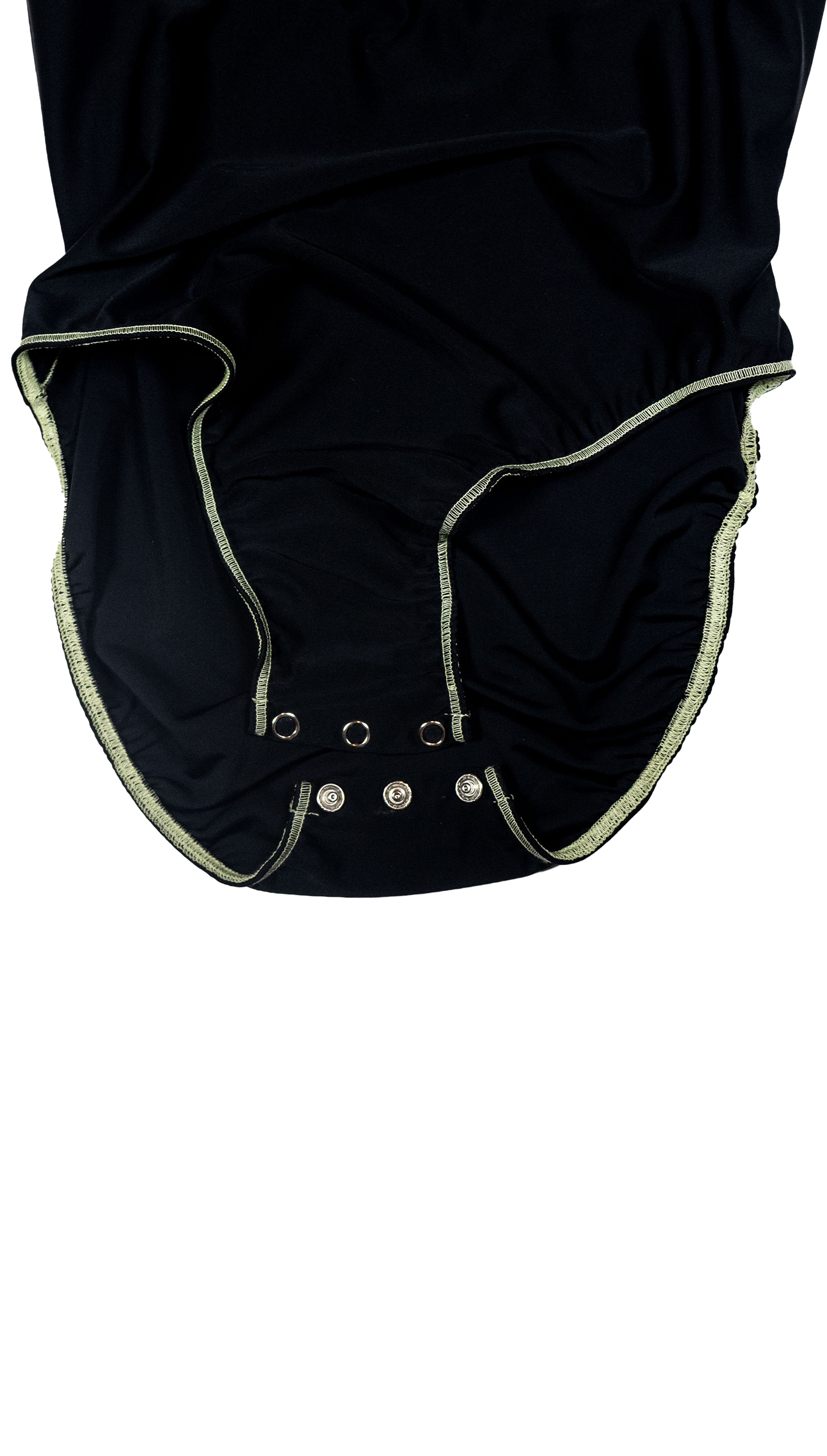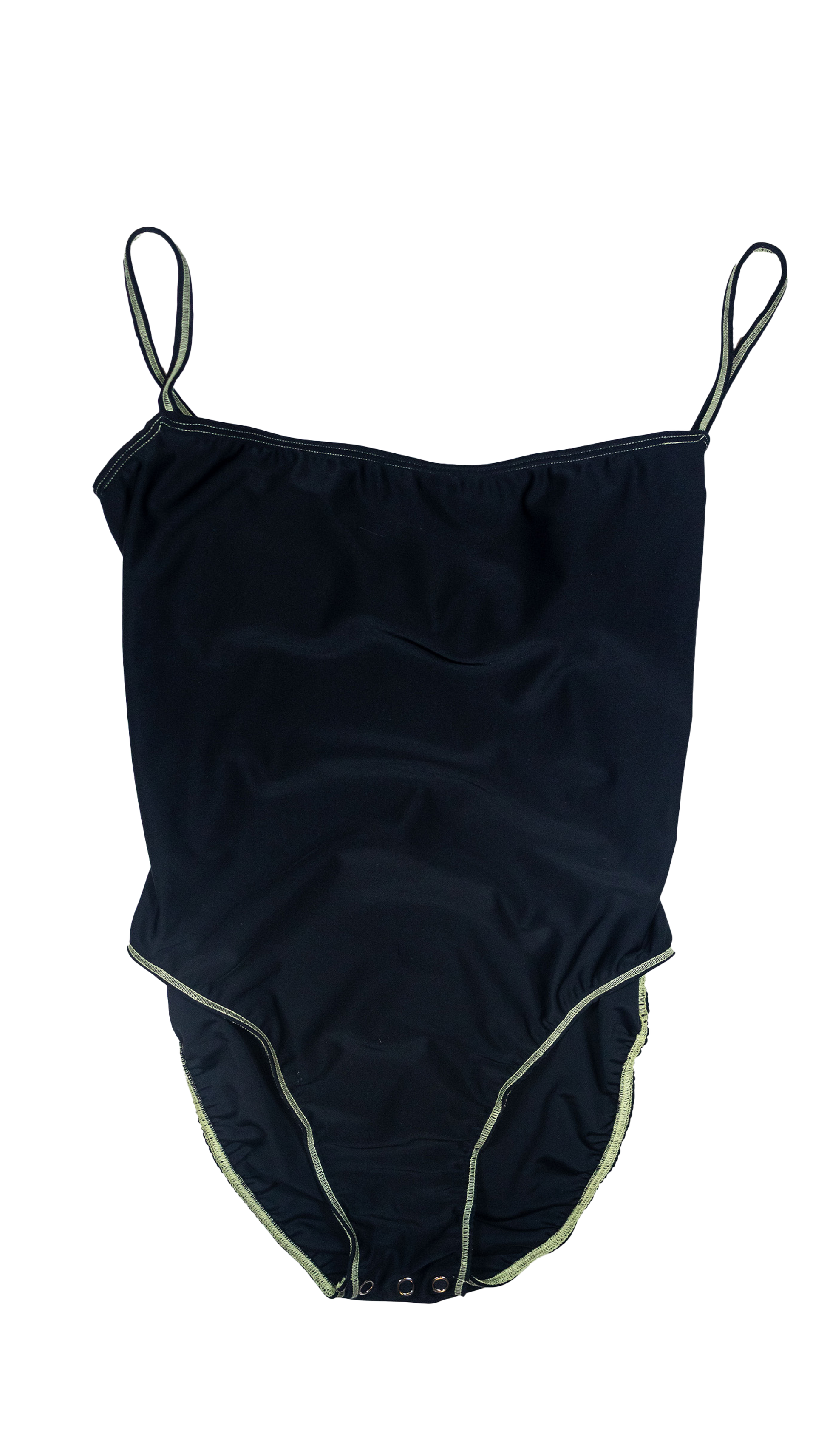 Bodysuit de tirantes con escote recto, ajustado al cuerpo y con botones de presión en la parte inferior. Confeccionado en licra. 85% poliéster, 15% spandex.