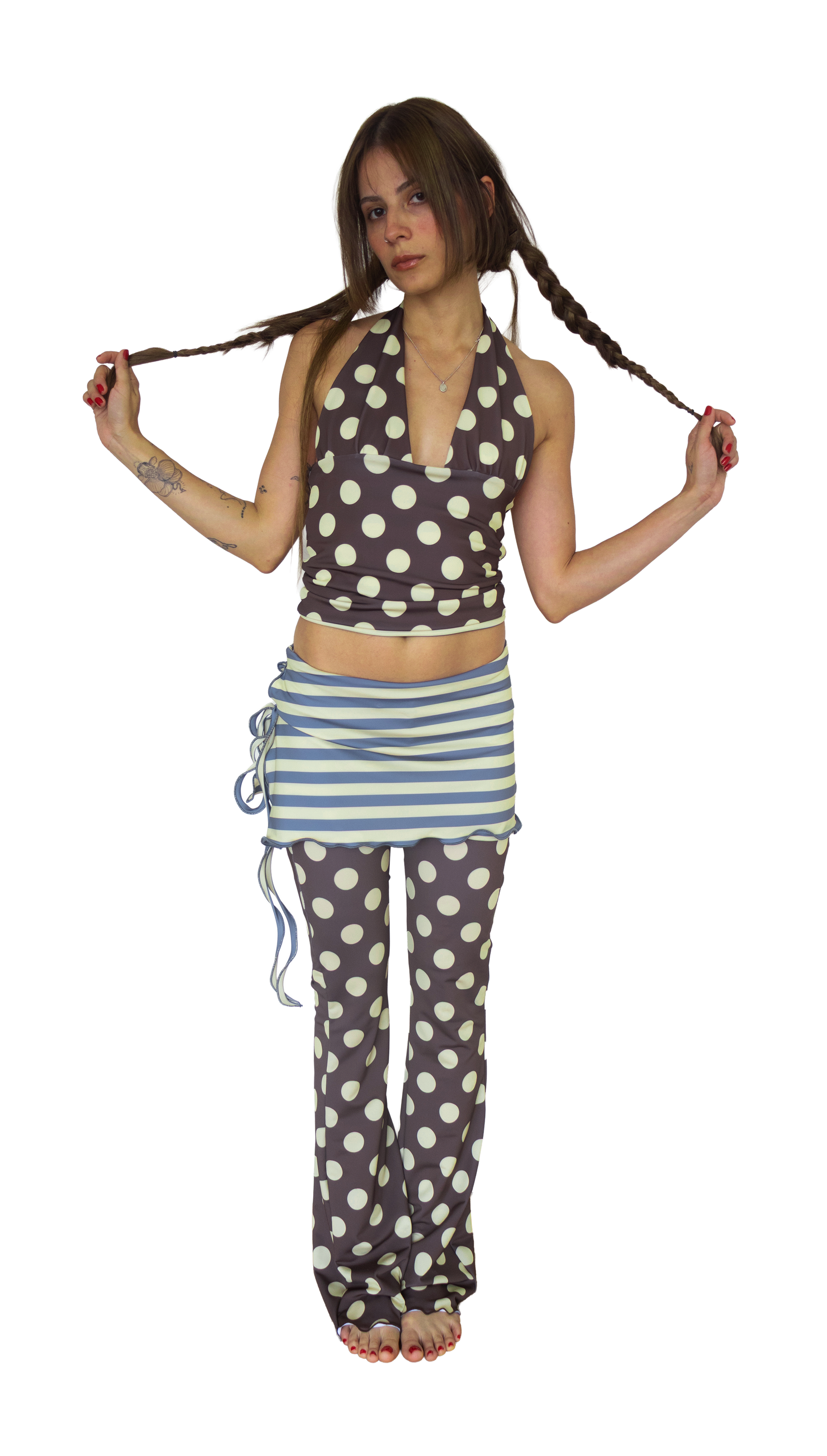 This hybrid piece blurs categories: fluid pants layered with a skirt to hold your logical, physical, and spiritual in harmony.